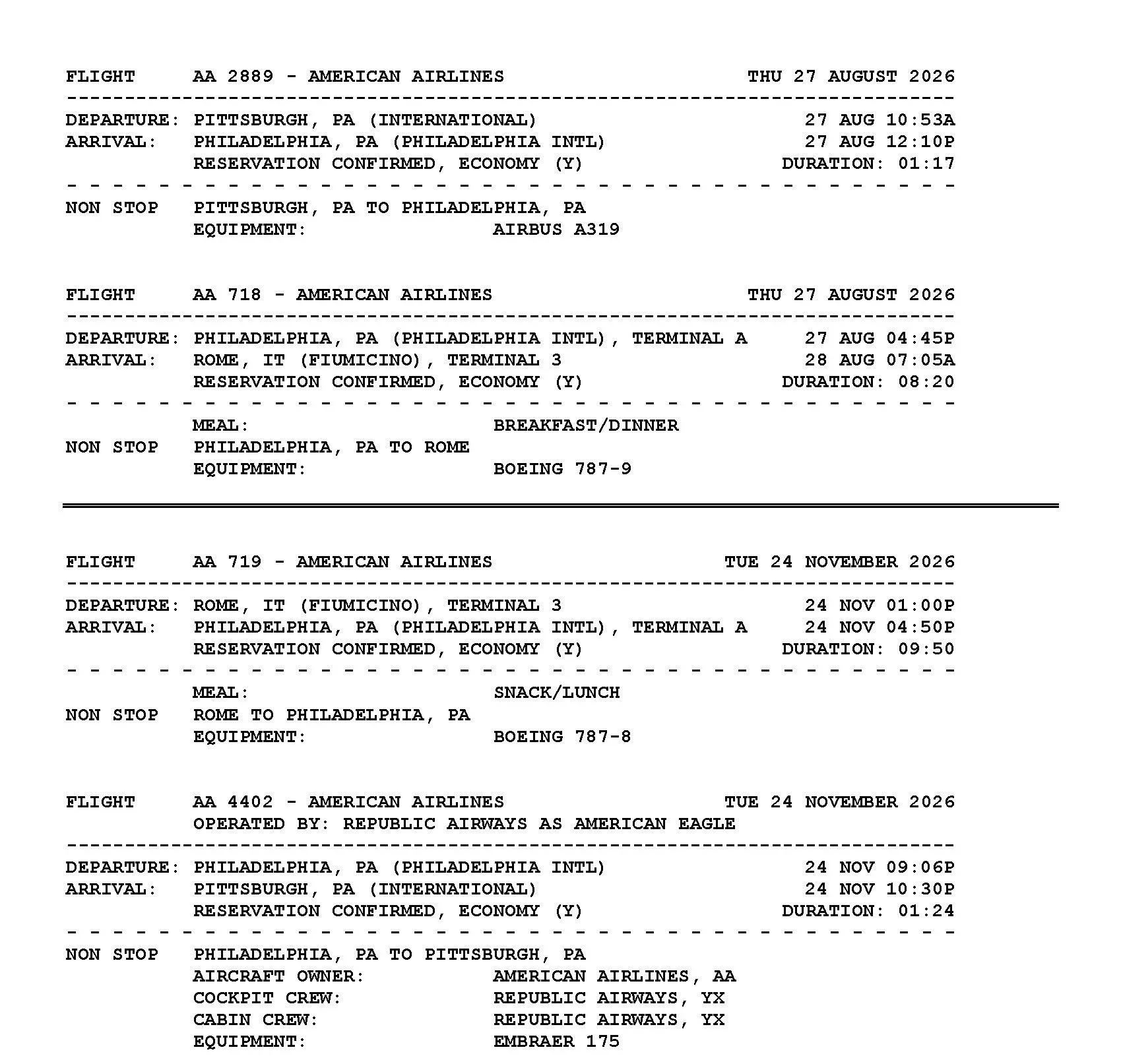Keep in mind when making custom flight arrangements that Italy and 25 other countries within the European Union that are signatories to the Schengen Treaty do not permit you to arrive within any of their collective borders prior to or stay beyond your academic program start/end dates. All other member states of the European Union also enforce this 89-day rule. Therefore, you should not plan to arrive in Italy or any other Schengen country or European Union member state before August 28, 2026 or to stay anywhere in the European Union beyond November 24, 2026 for vacation/tourism or for any other reason. See “Warning: Length-of-Stay Regulations” in your packet provided by Duquesne University.